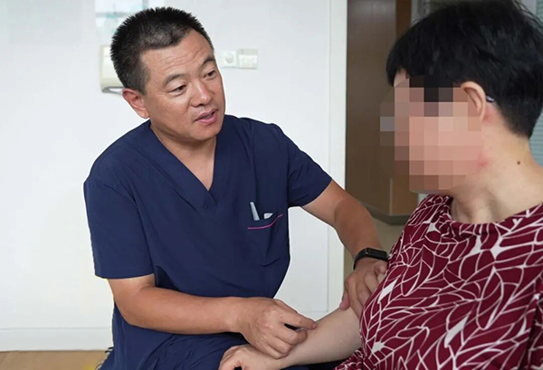 来院后,丁坤主任通过体格检查,发现其右肩三角肌、冈上肌及肱二头肌长头腱区域存在明显肌紧张与压痛点,结合活动受限情况,考虑为肩周软组织损伤伴肌筋膜疼痛综合征。第一次浮针治疗后,陈女士随即感到肩部轻松许多,活动范围明显改善。经过连续3次治疗,她的肩部疼痛基本消失,手臂可自由上举、后伸,夜间睡眠也恢复正常。她高兴地说:“我是第一次听说浮针,没想到治疗了3次就把我的胳膊疼给治好了,简直太神奇了!”