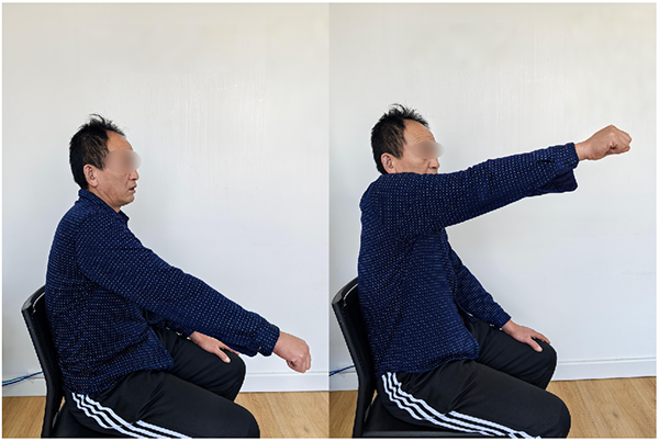 治疗过程中,患者抬手角度大幅改善,令其大感惊讶。随后,丁坤在斜方肌和三角肌补针加强,全程不足十分钟,疼痛评分已降至2分。王先生现场自如完成“脱外套、梳头、反手击掌”等动作,笑容满面,直呼要将这一“疼痛消消乐”式的疗法推荐给亲友。