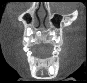 8岁的小林在一次口腔检查中偶然发现上颌藏有一颗额外牙齿。通过检查,医生清晰地看到一颗完全倒置的额外牙隐藏在上颌前牙区,紧邻正常牙根、鼻腔底部和鼻腭神经等重要结构。这颗牙齿位置特殊,传统手术方法存在视野受限和损伤风险。