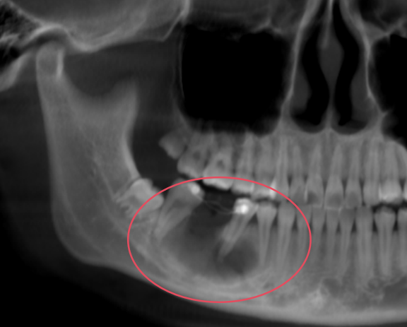 一年前,17岁的高中生莉莉感觉右下后牙区按压时有不适感,尽管牙齿本身并不疼痛,但是让她有些不安。出于谨慎,她还是决定检查一下。X光片的检查结果令她颇为意外——影像显示其右下颌骨内存在一个明显的低密度阴影,医生建议她尽快手术处理。