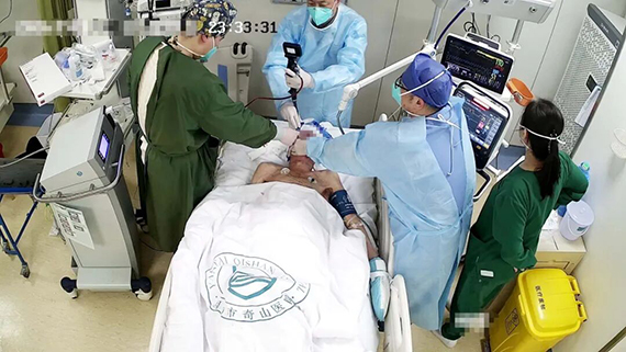 3月1日20:30,医院结核科一名90岁高龄患者突发大咯血,血氧饱和度骤降至29%,心率升至178次/分。医护人员立即启动抢救,迅速开放气道、连接心电监护、吸氧、吸痰、应用止血药物……但血氧仅维持在58%,且出现意识改变,病情持续恶化,考虑气道梗阻风险极高,值班医生杨明佳即刻联系麻醉科紧急插管,快速建立人工气道,患者血氧迅速回升至99%,为后续救治赢得关键时间。同时,紧急协调重症医学科及转运呼吸机,迅速完成患者转运。