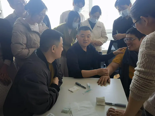 培训中,烟台市奇山医院浮针门诊丁坤主任亲自授课,凭借丰富的临床经验与教学功底,为学员带来系统化、实操化的浮针教学,通过“理论讲解+现场示范+手把手纠错”的沉浸式教学模式,细致拆解每一个技术要点,让学员直观感受、精准掌握标准化操作流程,从根源上夯实技术基础。