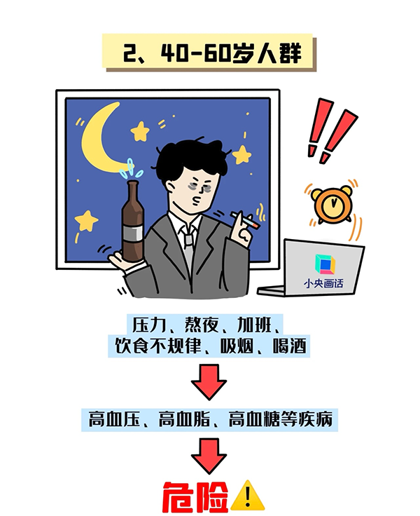 6.远离烟酒,定期体检:戒烟限酒,40岁以上人群、有基础病或家族心脏病史的人群,每年做一次全面体检,重点检查心电图、心脏彩超、血脂血糖,及时发现潜在问题。
