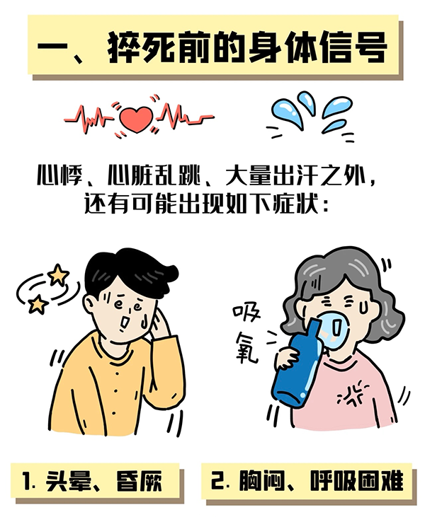 关键提醒:这些信号可能在猝死前数小时、数天甚至数周出现,一旦出现,立即停止活动,休息并及时就医,千万不要硬扛!